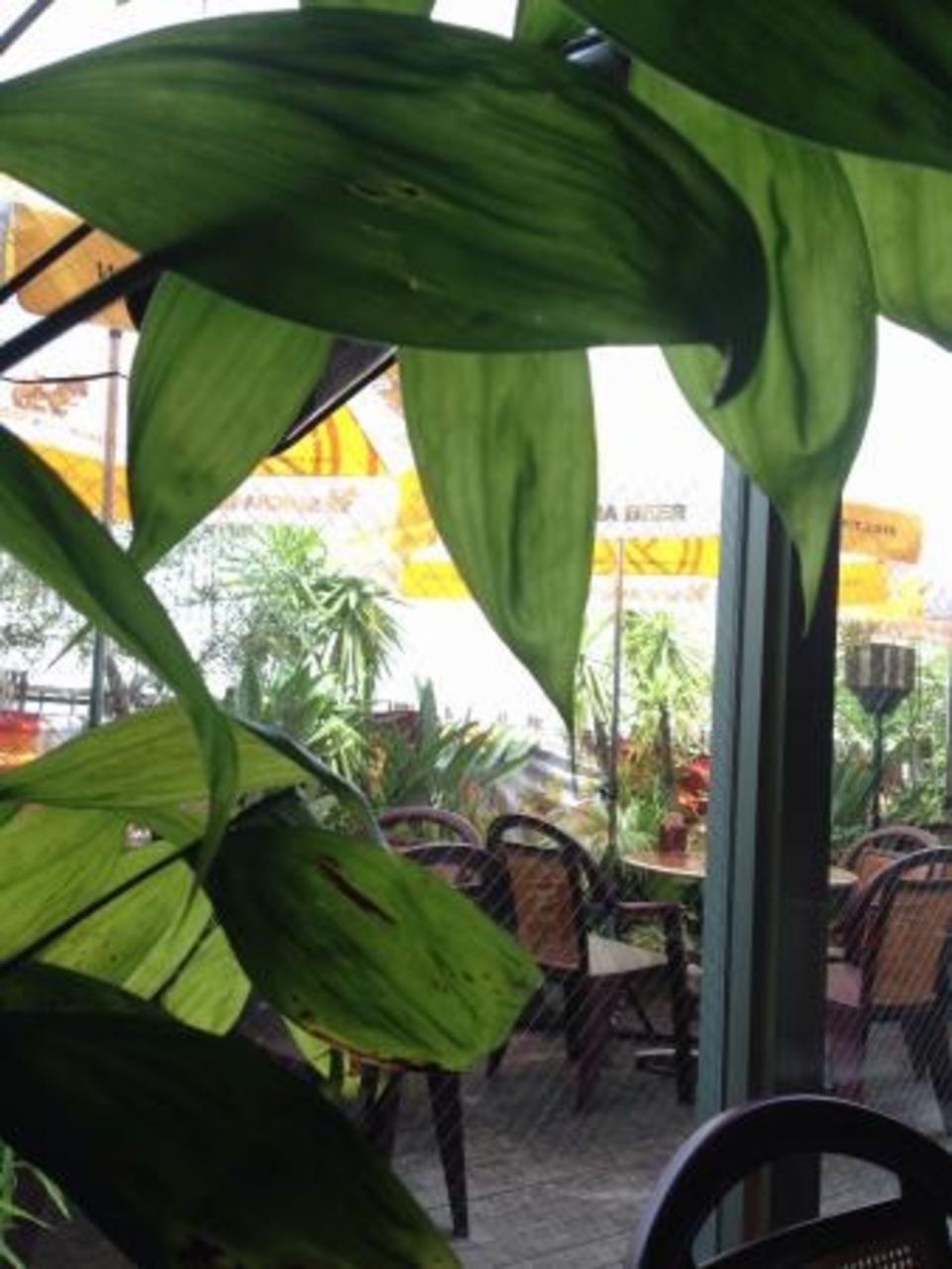 先日は暑すぎて、人気のテラス席には誰も座っていませんでした。