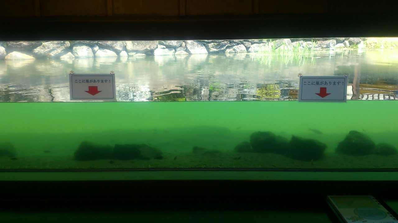 施設の半地下のガラス窓からイトヨの巣や生態を観察できます。その他貴重な資料が展示してあり、湧き水に恵まれた大野の自然の貴重さを実感できます。