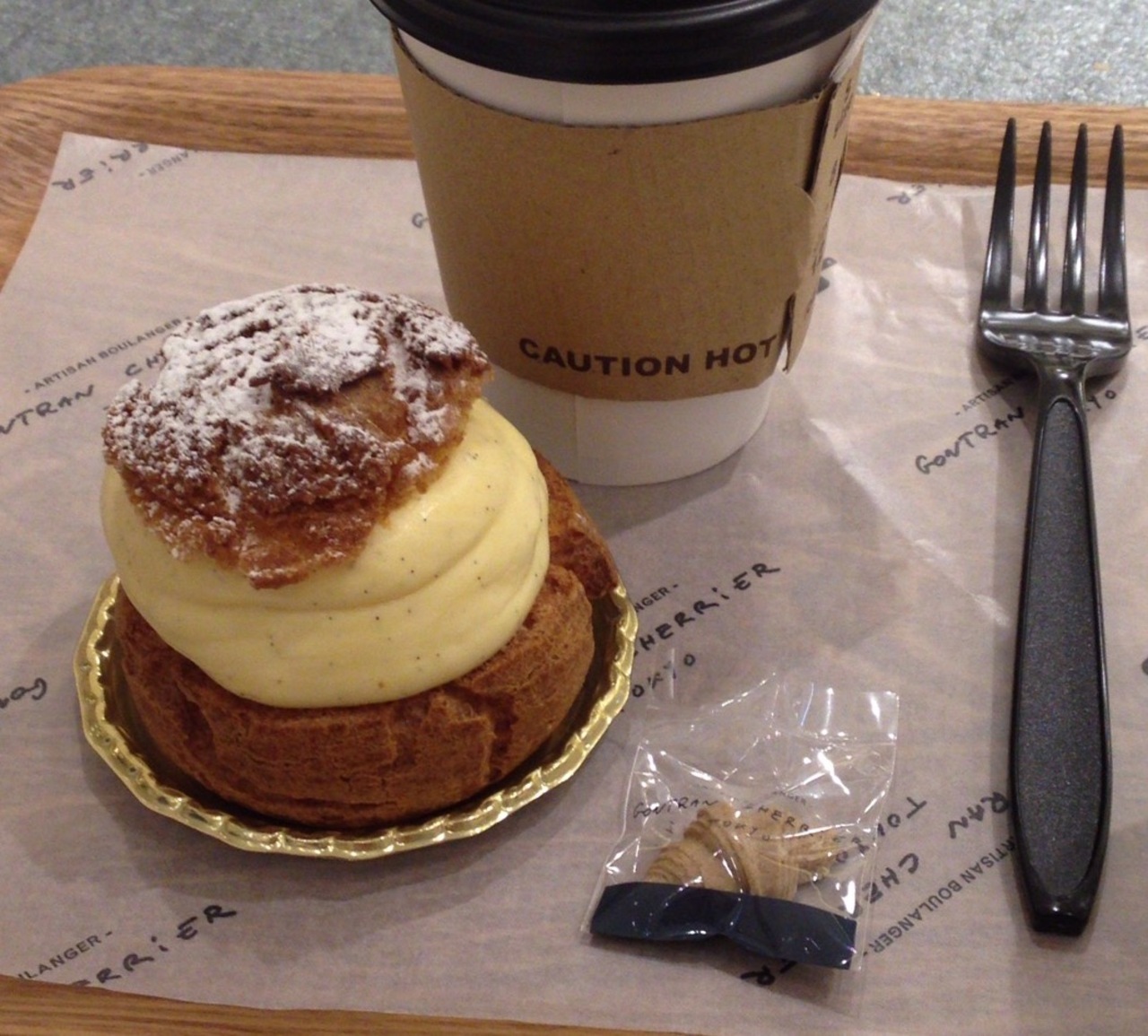 いつもはパンを購入しますが、クロワッサンがおいしいお店なのできっと皮がおいしいだろうと今回はシュークリームを注文。