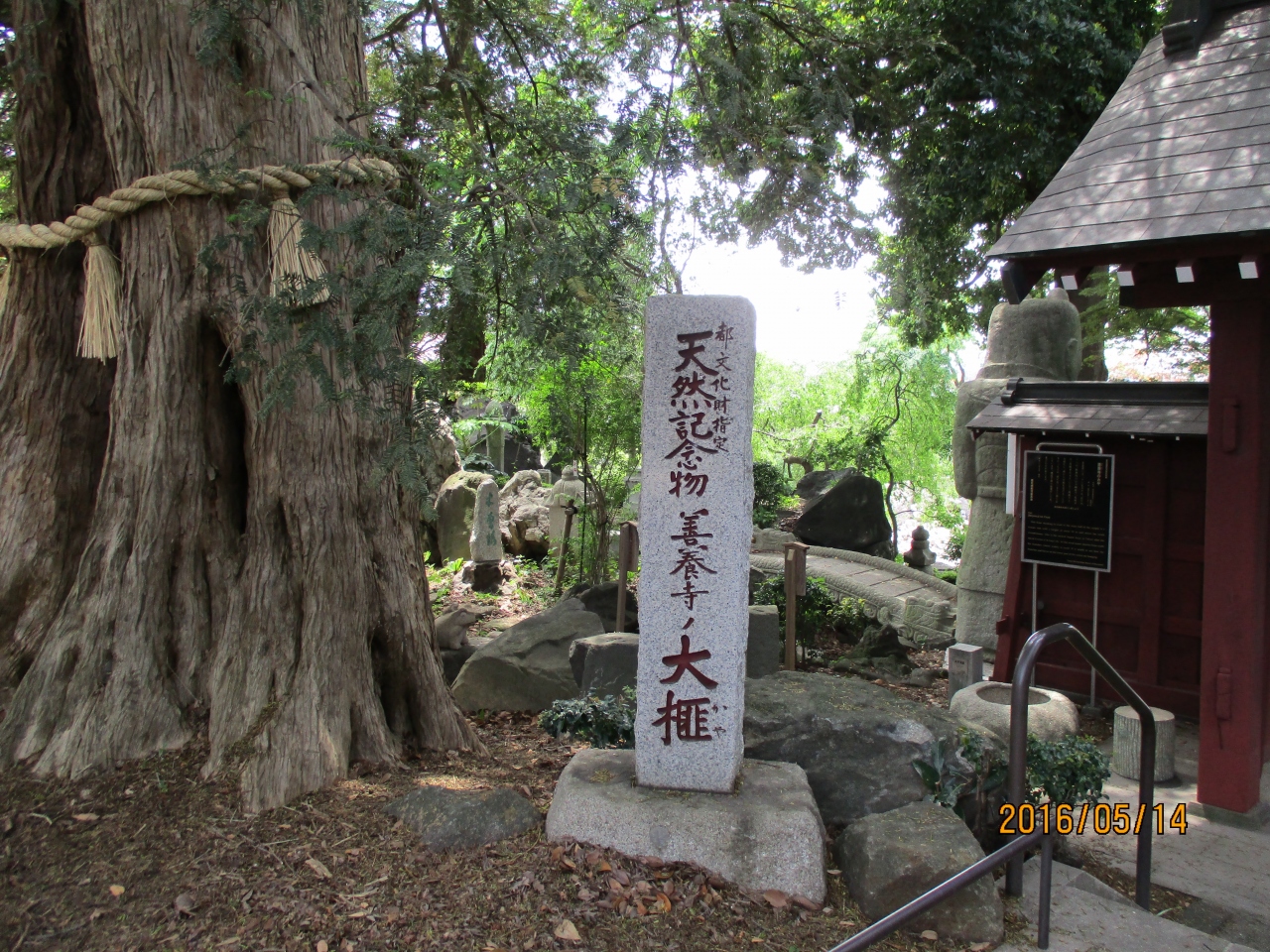 東急電鉄大井町線等々力駅から等々力渓谷を通り玉川野毛町公園を多摩川方面に向かうと野毛六所神社の先に善養寺があります。善養寺は江戸時代からあるお寺で樹齢700年以上と言われる(高さ18メートル、幹周り6メートル)カヤの木が東京都の天然記念物に指定されています。門、社務所、本堂の周りには海駝坐像、沢蟹、蛙、かっぱの石像や仏像など置いてあり圧倒されます。