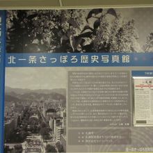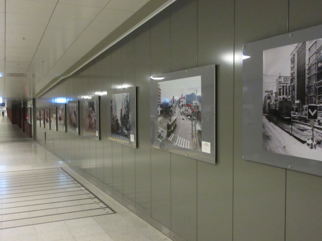 札幌駅前通地下歩行空間(チカホ)と北一条地下駐車場をつなぐ空間約30mほどの壁面に札幌の歴史写真を展示している。駐車場までの通路って味気ないものだが、なかなか上手く活用している。自分を含め立ち止まってみている人も多々いた。