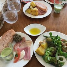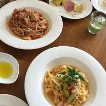小洒落た前菜がブッフェスタイルで、コーヒーか紅茶がついたパスタランチが税サ込で1500円ぴったり。お金をまとめやすいからか、グループ連れ女性でいつも賑わってます。