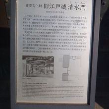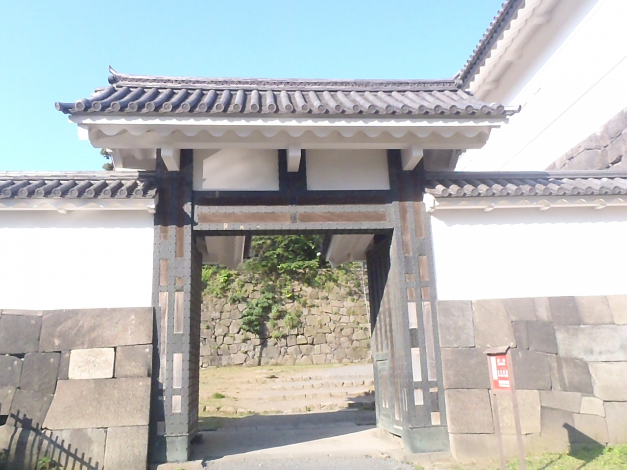 内堀通り沿い北の丸北東部に位置する枡形門で、正面の高麗門とその奥にある櫓門からなる昭和36年6月に重要文化財に指定された門です。