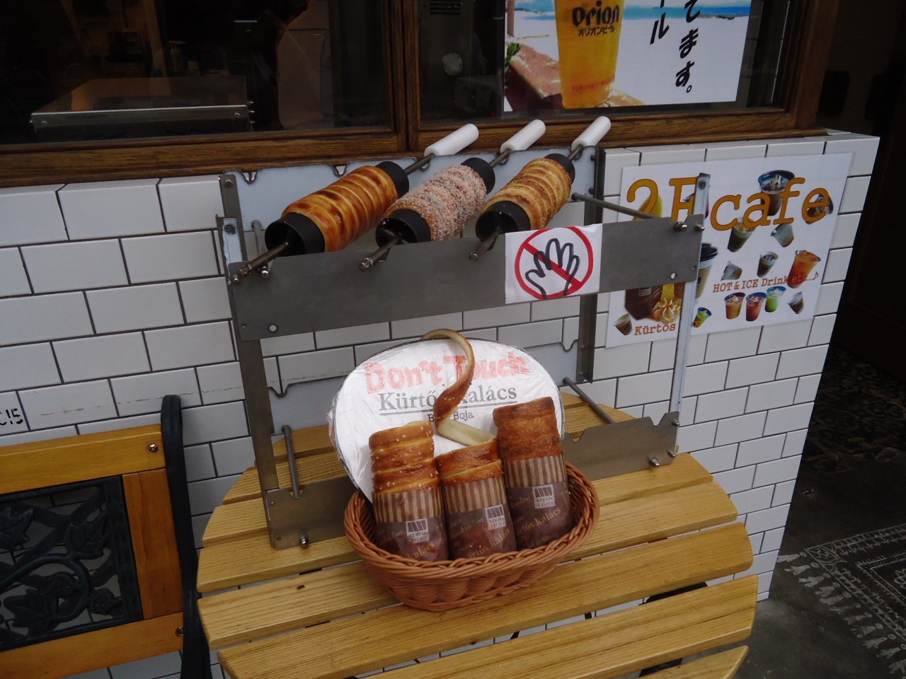 国際通りをプラプラしているとクルクルしたパンが!ハンガリーなどでよく売られているパンです。あー私の大好きなやつだと食事をした後にもかかわらず入店。ここのお店では注文してから焼き上げてくれるのでアツアツの出来立てを食べることができます。外側はパリパリし中はモッチリ。まさか沖縄で食べることができると思っていなかったのでホントにうれしかったです。