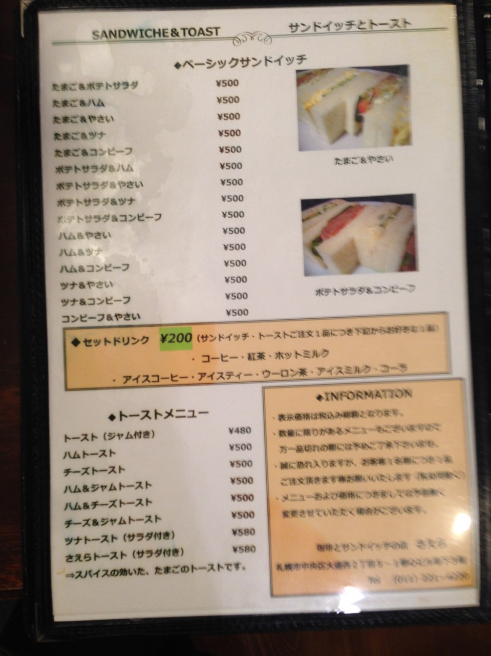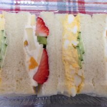 札幌大通り公園面した19番地下出口の地下にあります。10:00開店ですが、9:30過ぎから並びました。9:57頃開店してくれましたが、既に20人くらい並んでました。テイクアウトだったので、カウンターでメニューを見せてもらい注文しました。タラバガニ&サーモン、フルーツ&たまごを購入しました。