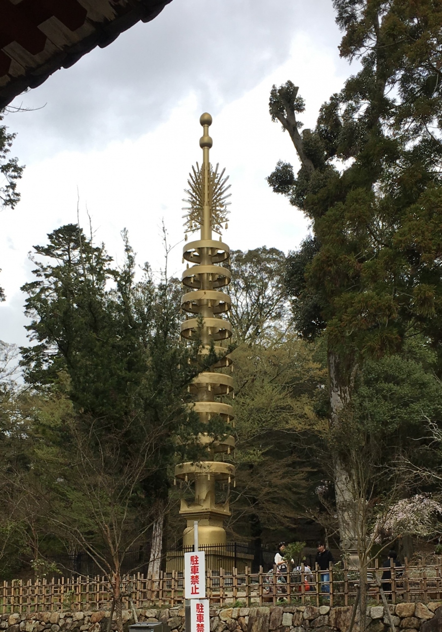 東大寺の境内には平安時代末頃まで東西に七重塔があったそう。その高さは100mもあったとか。大仏殿の東側にある相隣は、大阪万博の際に再現したもので、万博後に東大寺へ移設されたもの。相輪の高さだけで23mもありました。