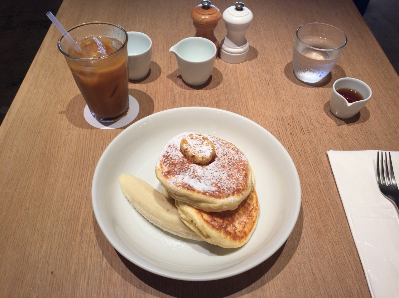 ハワイのBillsでよくリコッタパンケーキを食べるのですが、味は基本的に同じですが、お台場の方がフワフワでした。あと、バナナの切り方が違いました。笑