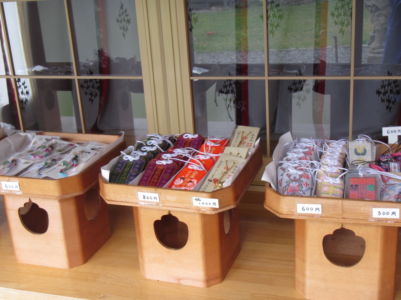 神社には簡易ながらも授与所もあり、厳島神社の御守などがありました。
