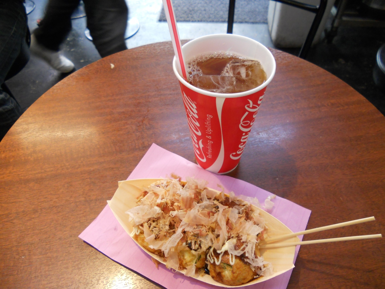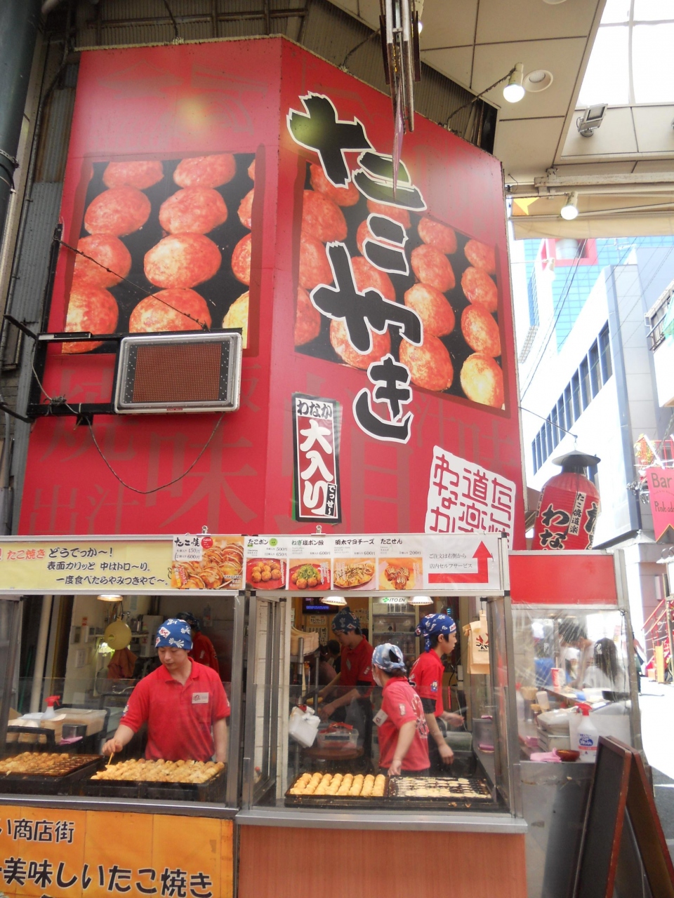 「大阪天満宮」を観光後、「天神橋筋商店街」を北上している途中で、大盛況のたこ焼き店を発見したので、こちらの「たこ焼き道楽 わなか」でいただくことに。