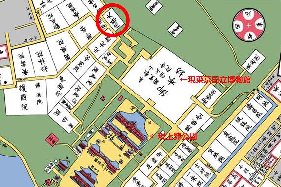 現在の 寛永寺 本堂 (根本中堂) は、寛永寺の子院、 「 大慈院 」 のあった敷地に、明治12年(1879年)、川越喜多院の本地堂を移築したものだそうです。 古地図を見るとこのことがよく分かるので、是非古地図を見られて下さい。