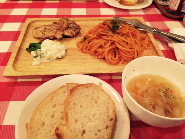 パスタはナポリタンとミートソースから選べ、ナポリタンにしました。