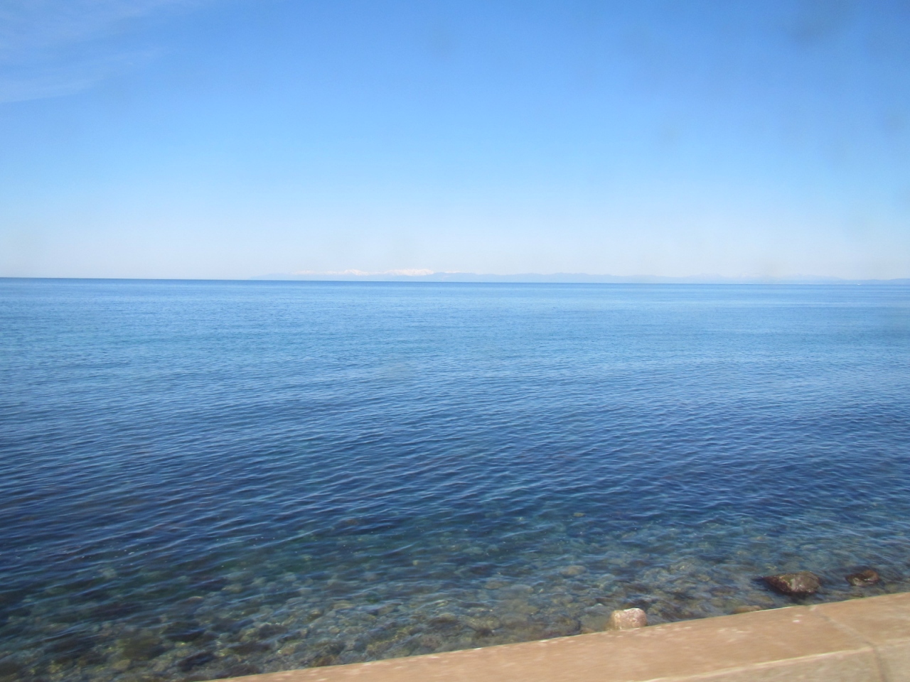 森駅に到着した後は、しばらく続く噴火湾沿いの海の風景も癒やされます。
