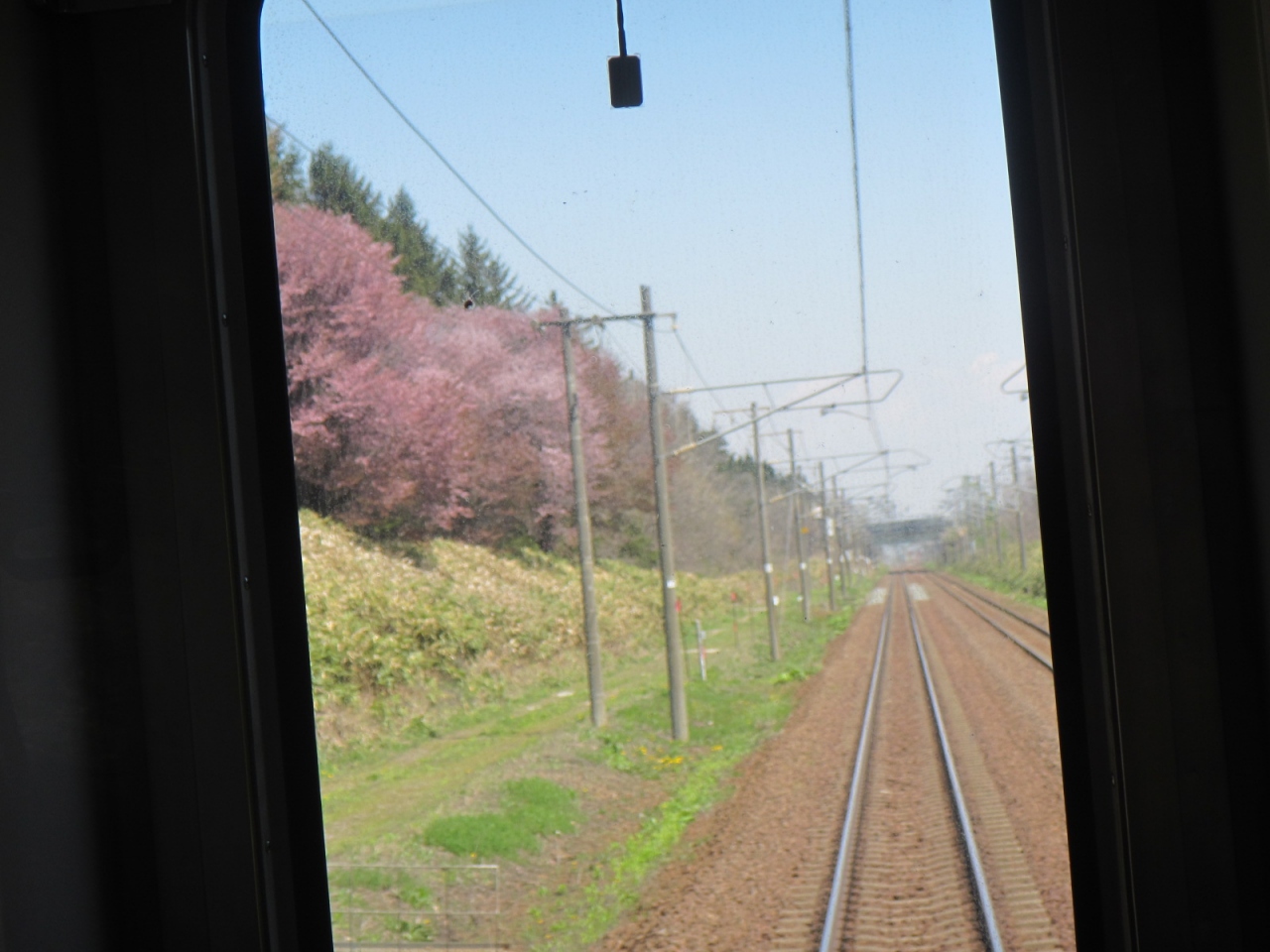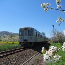 仁木では5月中旬、沿線にサクランボの白い花が咲きます。