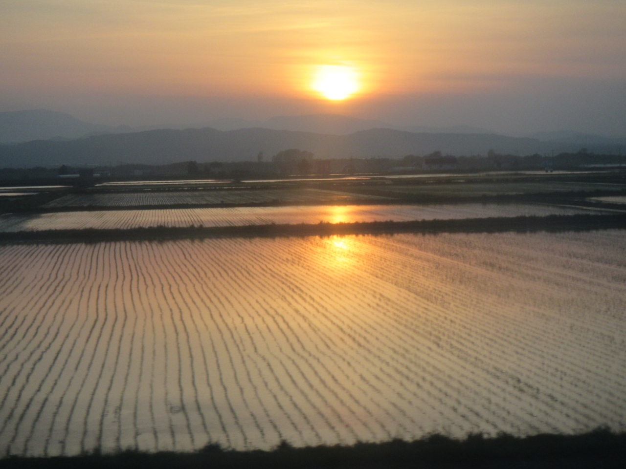 個人的には、5月下旬、まだ何も育っていない水を張った田んぼに夕日が映る様子や、秋、黄金色に染まった田んぼの様子がきれいだと思います。
