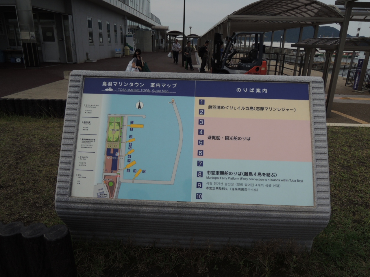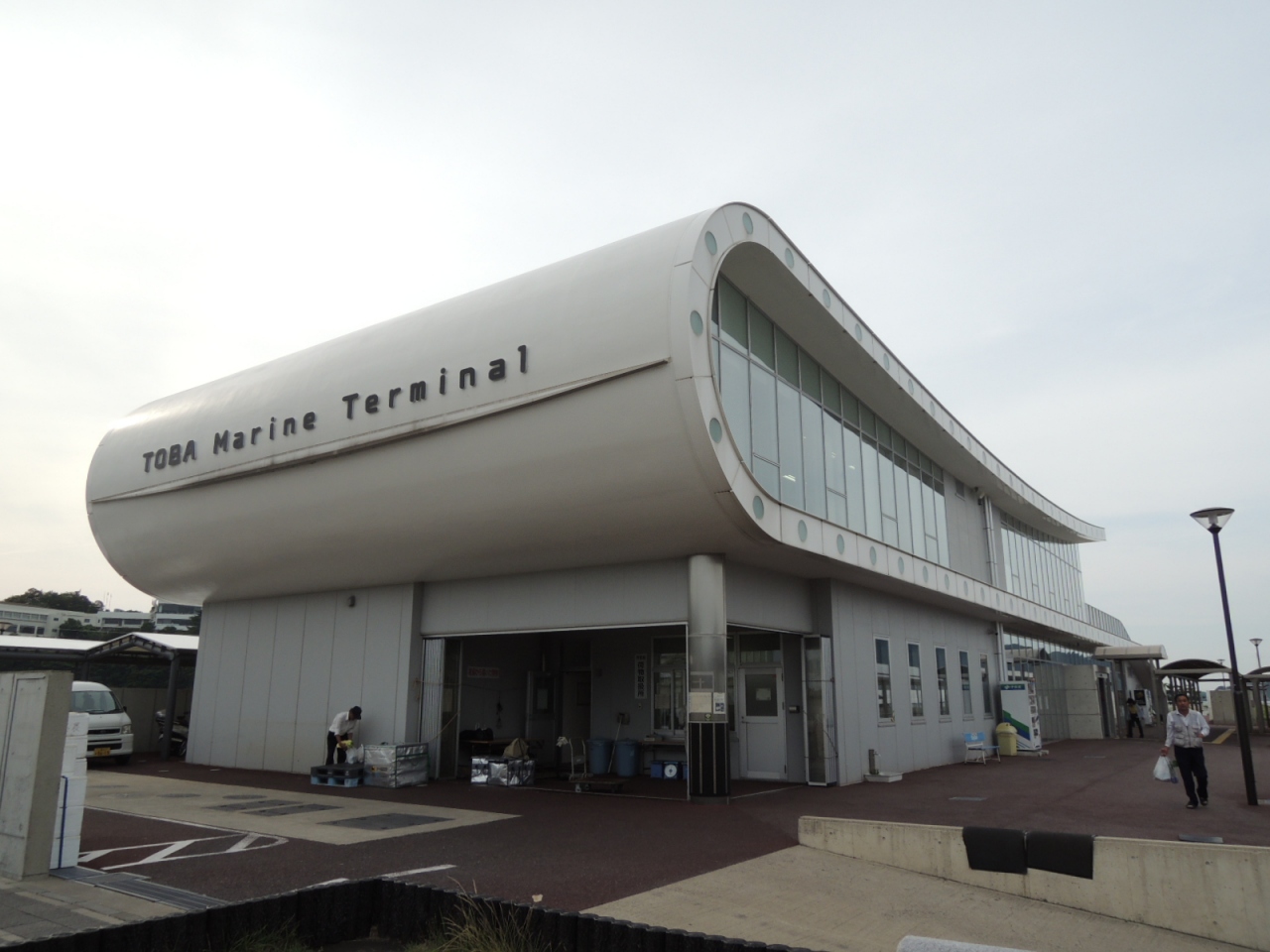 近鉄鳥羽駅から面白い形の建物が見えたので、特急の出発までの時間にに行ってみました。駅から歩いて5分の建物は「鳥羽マリンターミナル」で、答志島や菅島への定期船や湾内を巡る観光船が発着するターミナルで、切符売り場や待合室、お店などが入っていました。建物の周辺には幾つも駐車場があり、大きなスーツケースをひいた人が行き交っていました。次回の旅行はここから島巡りに行こうと思います。