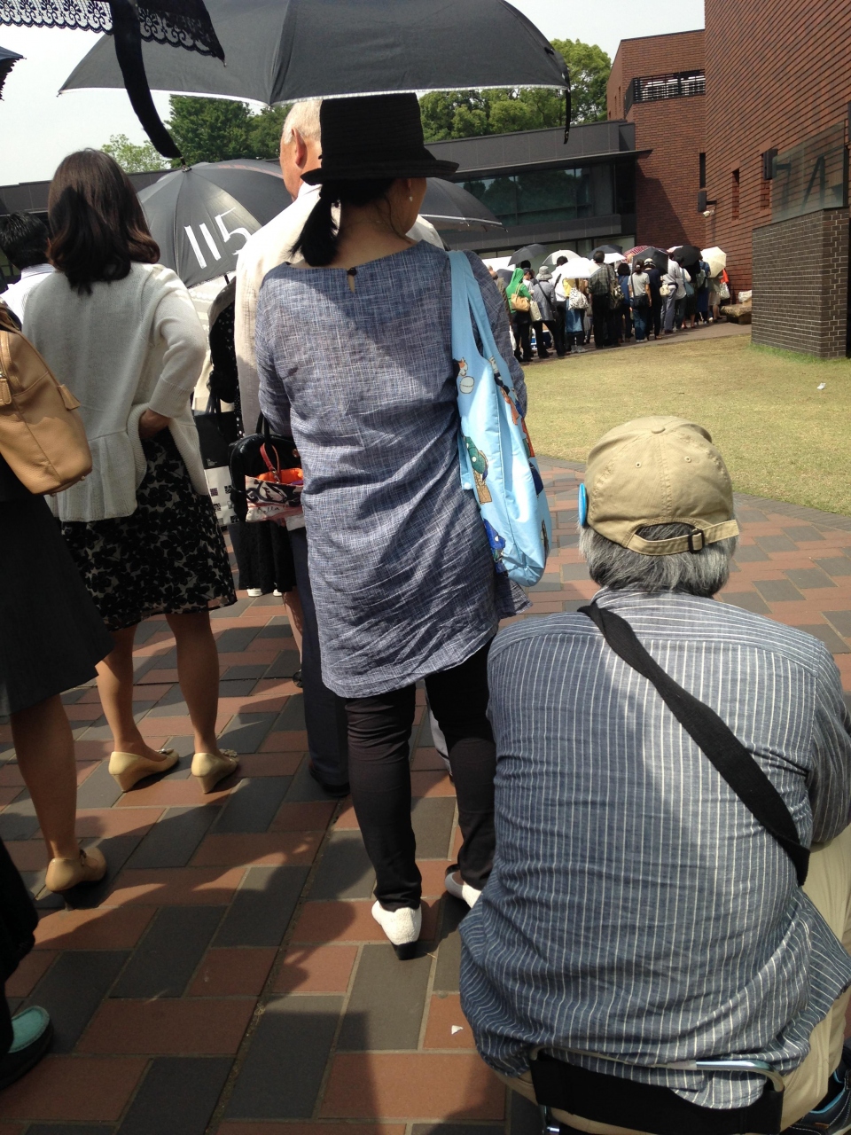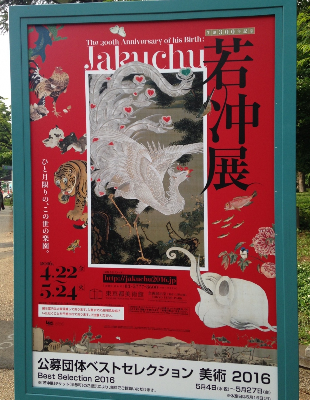 開催期間1か月の若冲展の入場者は446,000人。5/22に入場予定でしたが午後2時時点で120分待ち!時間調整がつかずに断念!諦められずに最終日の5/24の正午に調べるとなんと60分待ちの表示に東京都美術館へ駆けつけました。日傘、うちわ、水、冷やしたオシボリ(ペーパー)と飴が熱中症対策で用意されていました。若冲生誕300年記念の約90点近い作品は釈迦三尊像と動植綵絵 30幅をはじめ、目をみはる色彩と緻密な描写の世界でした。仙台でみたプライス・コレクションも展示されていました。図録は完売で注文販売でした。