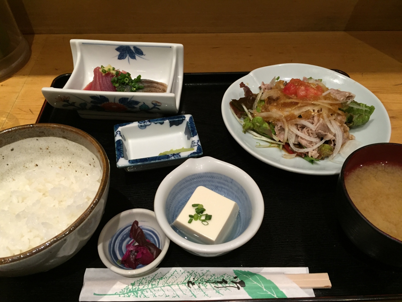 お刺身から塩焼き、牛肉のサラダなど種類豊富で、どれも美味しく表参道ではコスパのよいランチスポットかと思います。