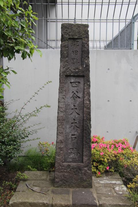 地下鉄新宿御苑前駅から歩いて5分程の新宿通り(甲州街道)と外苑西通りの交差点の近くに碑があります。