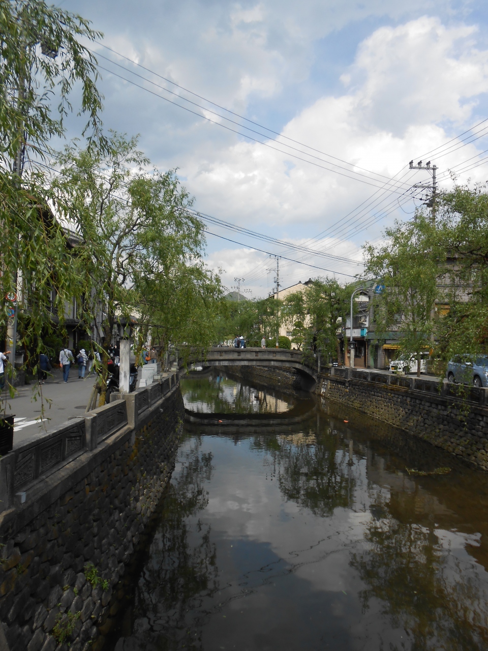 JR城崎温泉から徒歩。外湯巡りの温泉が並んでいます。川沿いを浴衣で歩くととても風情があります。