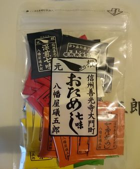 1736年(江戸時代)創業、老舗の七味唐辛子専門店です。本店は善光寺近くに構えています。こちらの店舗は、昨年オープンした駅ビル「MIDORI長野」の2階、信州おみやげ参道 「ORAHO」にあります。ゆず七味、深煎七味、粉山椒などが小袋に入った「お試し七味」をお土産に購入しました。お値段も手ごろですし、いろんな風味が楽しめたと好評でした。
