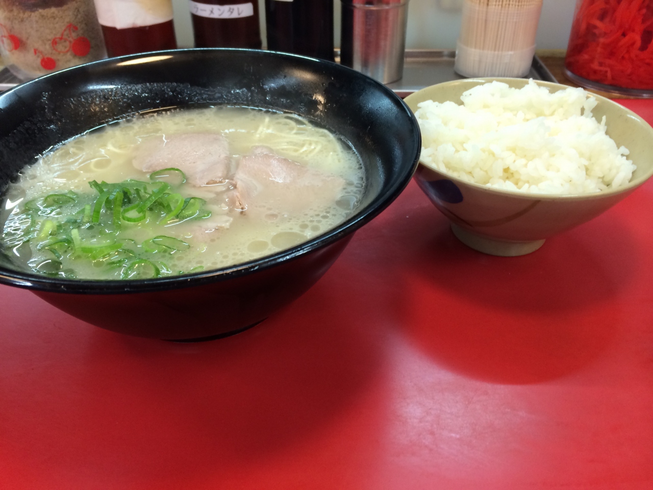 お世辞にも綺麗ではないですが、とにかく安いです。ラーメン、餃子、ライスのセットで550円でした。ラーメンは長浜ラーメンです。