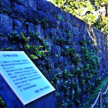 都会的なビルの脇を歩いていると、突如このような石垣が目の前にあらわれたりするところが東京のおもしろさですね。 この石垣も、まったく似つかわしくないような場所にあるのが意外でおもしろいところ。