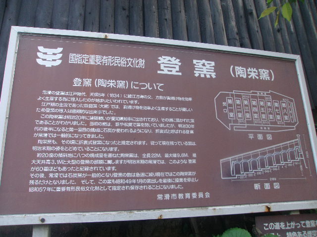 空港の町常滑の市街地で、一番の見所と言っても過言ではないのがこちらの登り窯です。周囲にちょっとした歩道が整備されていて、一周して全体を眺められるようになっています。このように立派な登り窯がかつては他にも沢山あったそうで、焼き物の町常滑の底力を目の当たりにした気持ちになりました。尚、現在はここが残されている唯一の登り窯とのことで、国指定の有形文化財になっています。