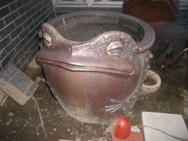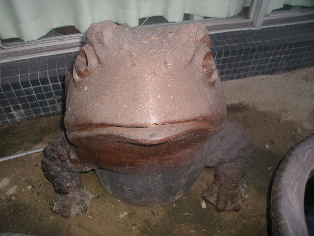 常滑焼の全貌が楽しめる会館ですが、私がお勧めしたいのはここの建物向かって左側にひっそりと置かれているカエルさんです。そう言えば、同じく動物焼き物の製作で有名な滋賀の信楽焼も特にタヌキさん、そしてカエルさんも有名ですが、常滑焼でもタヌキさん、カエルさんを製作しているようですね。特に甕になっているカエルさんがカエルマニア的には秀逸に感じられました!