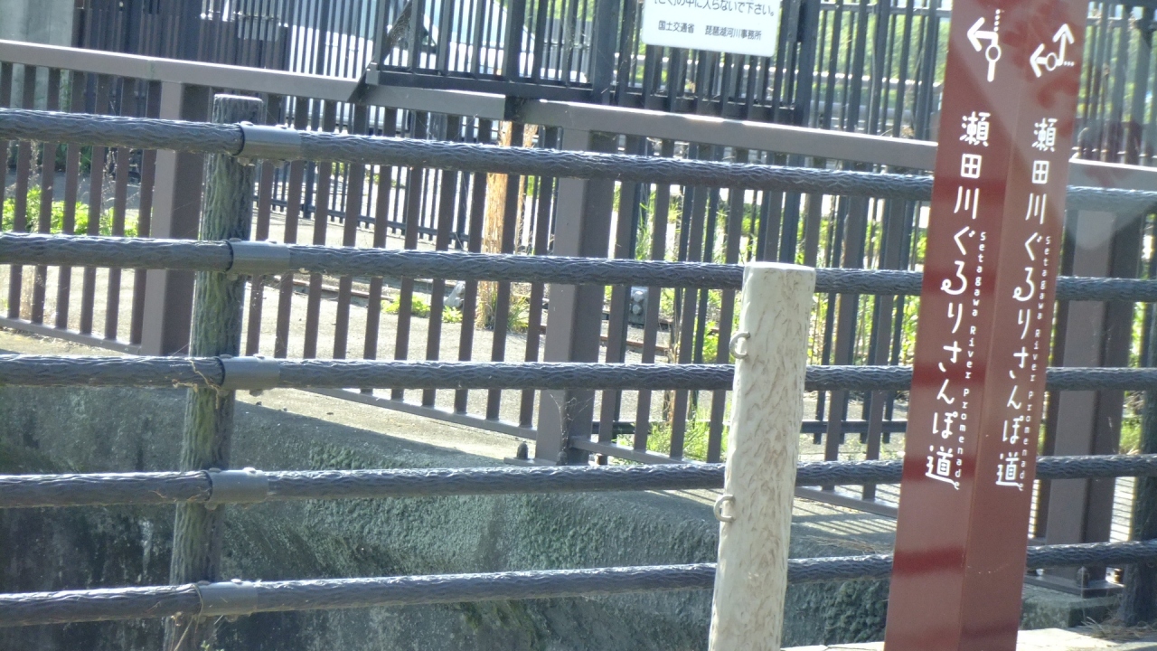 石山寺の駅から石山寺までを散策する際に、少し距離がある中を歩くのですが、瀬田川沿いは「瀬田川ぐるりさんぽみち」という名称で、きれいに整備されています。川を見ながらゆっくり石山寺に向かうことができます。また、道々には花壇もきれいに整備されていました。