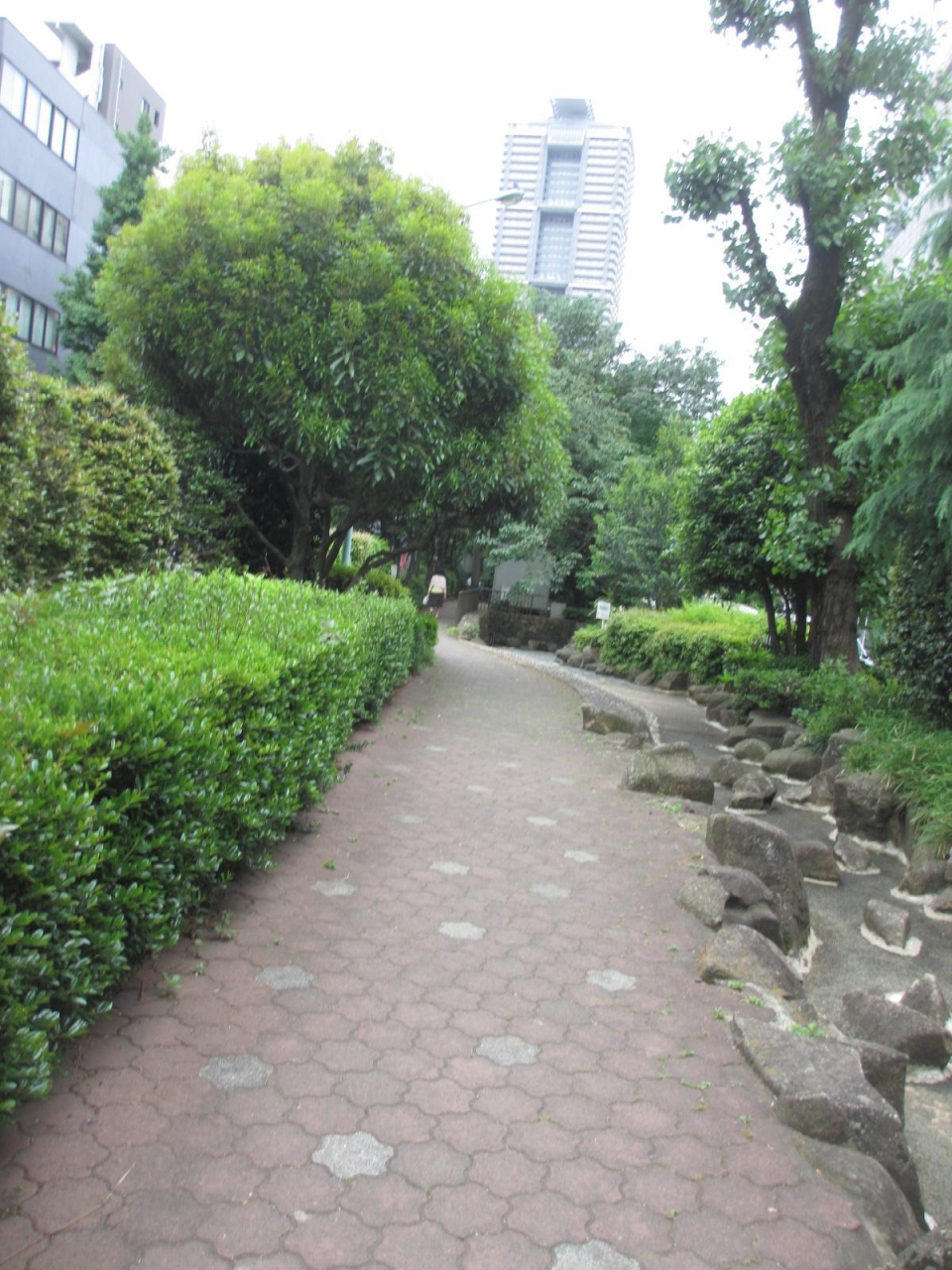 人形町界隈を散策した際に通りました。人形町と浜町の中間くらいを、北西から南東の方向に走っている緑道です。中間よりやや北西側で甘酒横丁と交差します。道幅は狭いのに、喫煙所のような場所があったり、結構人が多かったりしてのんびりくつろげるような雰囲気を私は感じませんでした。
