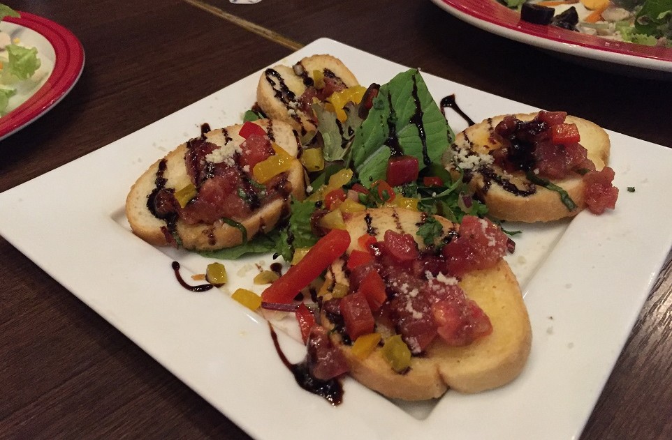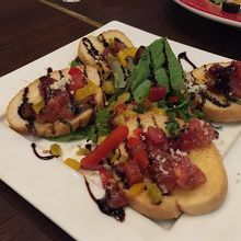 その名の通り、ガーリックトーストにバジルのきいたトマトベースのサルサを乗せていただくアペタイザー!