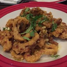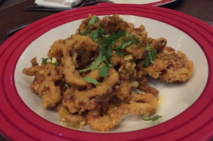 一般的なフライドカラマリはトマトベースのマリナーラソースだが、こちらは3種の唐辛子を使ったチリソースがフライデーズ流!