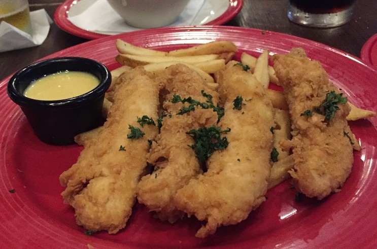 チキンフィンガーにはバッファローウィングソースもよく合いますがこちらではヴィネグレットソースと一緒に提供されます!