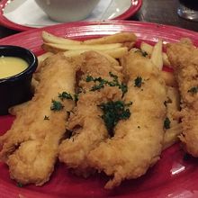 手羽先や手羽元の部位を使ったバッファロー・ウィングスに対して、チキンフィンガーはヘルシーなささみ肉のフライドチキン!