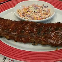 あらかじめ炊いて骨離れを良くしたリブにBBQソースを塗って焼いたアメリカ南部の定番!