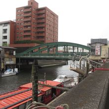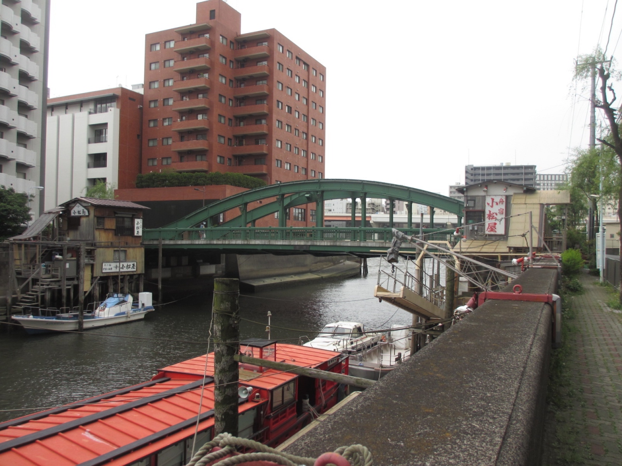 神田川が隅田川に合流する少し手前の神田川に架かる橋です。両国橋のすぐ北西です。付近を散策した際に渡りましたが、橋の周囲には船宿があり屋形船も浮かんでいて、橋の色の深緑も相まって良い雰囲気だと思いました。