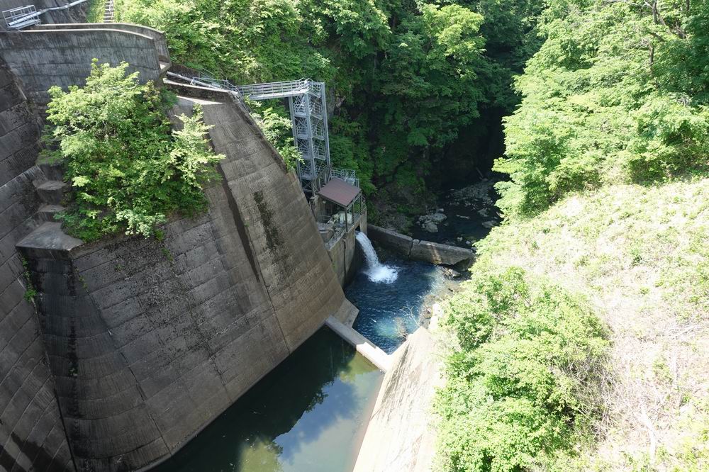 国道353号線を中之条の中心部から四万温泉へと行く途中、中之条ダムによって堰き止められたダム湖です。国道を走っていれば左手に現れます。ダム湖自体は駐車場からでも見れるのですが、堰の部分が歩けるようになっているので、湖面を近くで見たりダムを上から見たりするには堰を歩いてみるのもおすすめ。