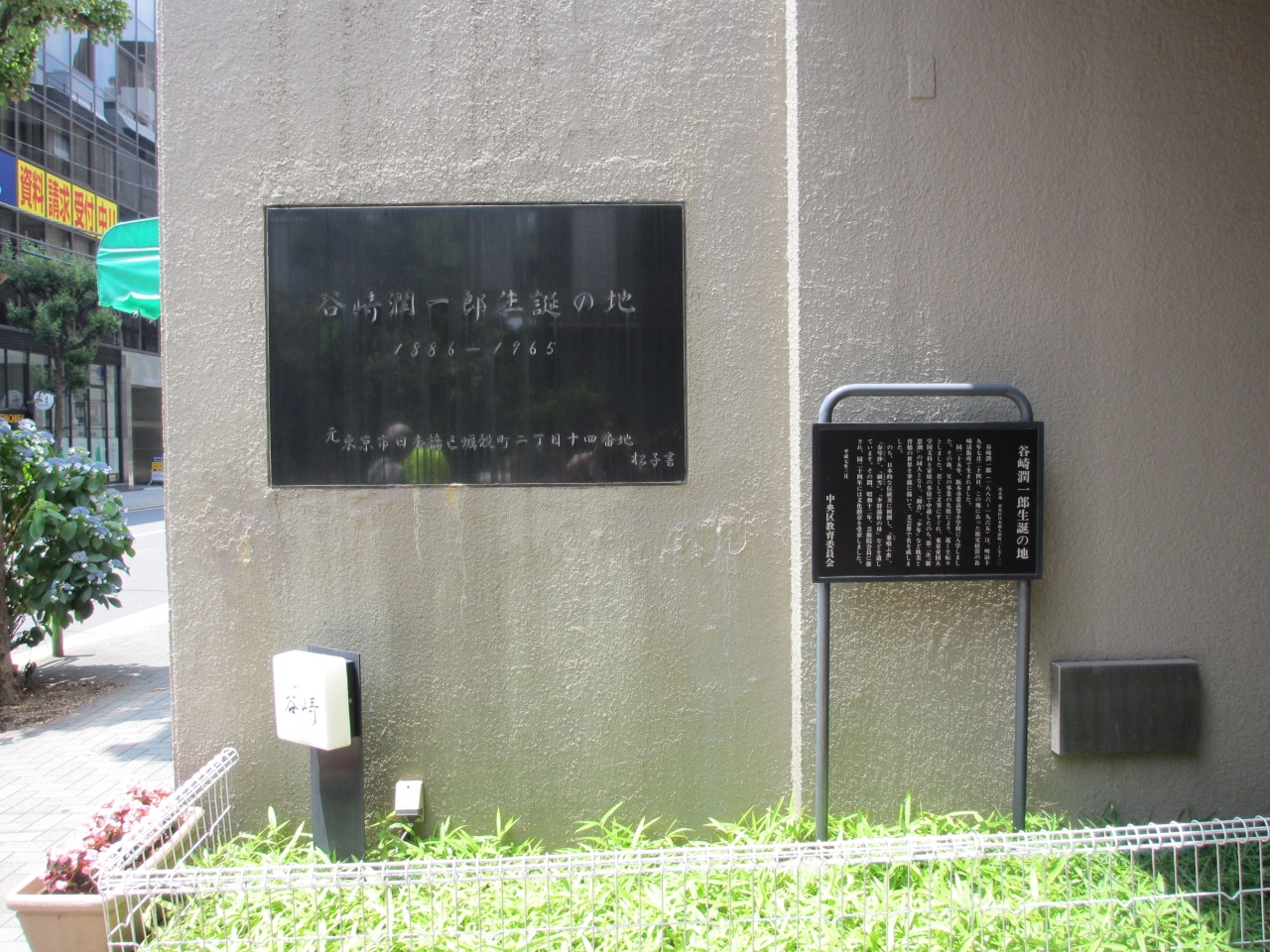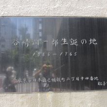 地下鉄日比谷線・人形町駅出口A2から1~2分ほどの所にある洋食小春軒の隣のビルの壁にプレートがあります。1886年、この近くにあったおじいさんが経営する活版所で生まれました。プレートはわかりづらいところにあるので、注意して探す必要があります。隣にはたにざきという名の料理屋さんがあります。