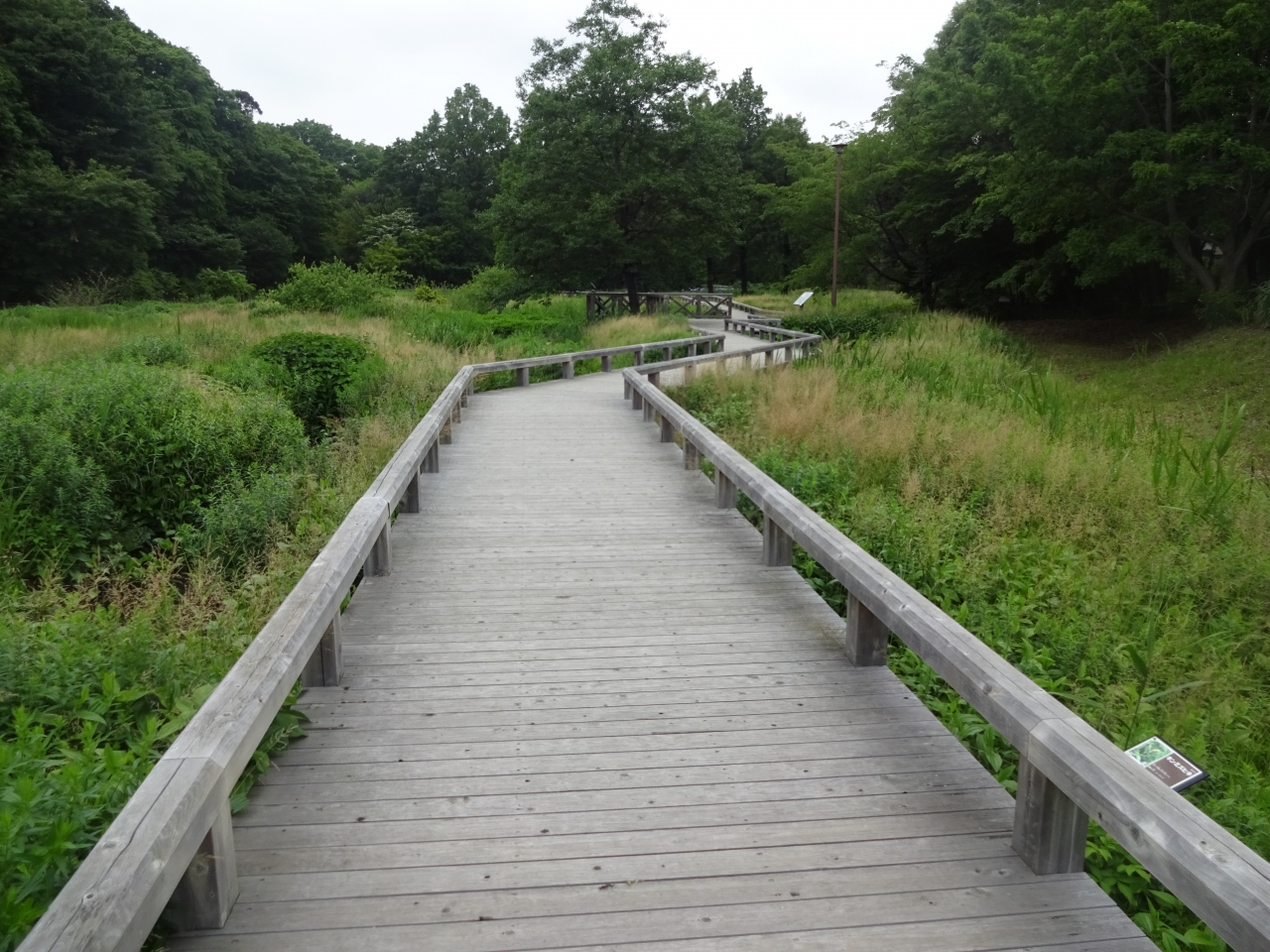 水生植物が植えられている周囲は木道があり、ゆっくり散策するにはとてもよい場所。