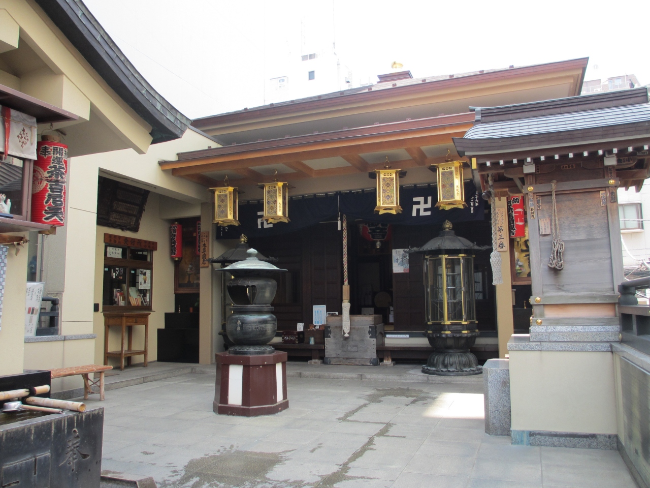 人形町交差点とからくり櫓・町火消しの間にあります。都心にあるため敷地は広くありませんが、御本尊である鉄造菩薩頭のほか、馬頭観世音菩薩、毘沙門天、阿弥陀如来など8つの仏像が祀られ、毎月11日と17日には御本尊が御開帳されます。写経や座禅も体験できます。