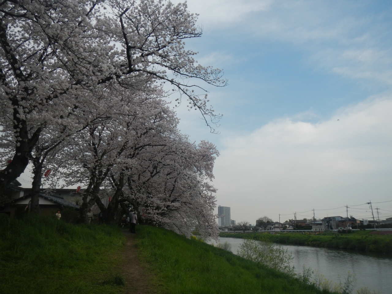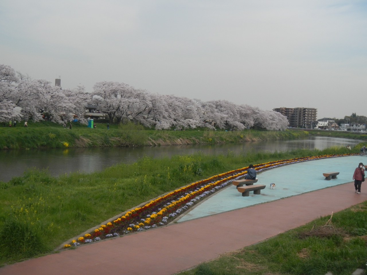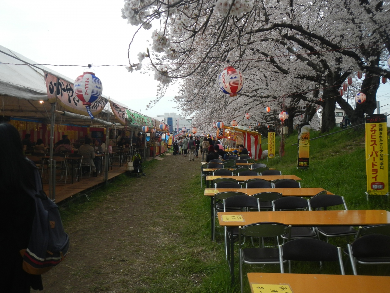 3月下旬に訪れた時はまだ満開には早かったが、4月になると満開だった。桜が植えられている土手の花の下を歩くのもよし、川の対岸から桜並木を眺めるものよい。ただ屋台がたくさん出ているのが邪魔だ。何とかならいものかと毎回来るたびに思う。