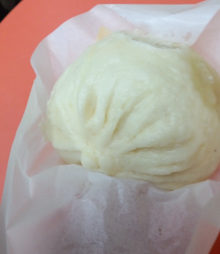 中華のお店で店内でいろいろ飲食することが出来ますが、店頭では豚まんを立って食べられるスペースがあったので、早速豚まん190円を注文しました。