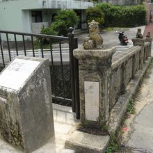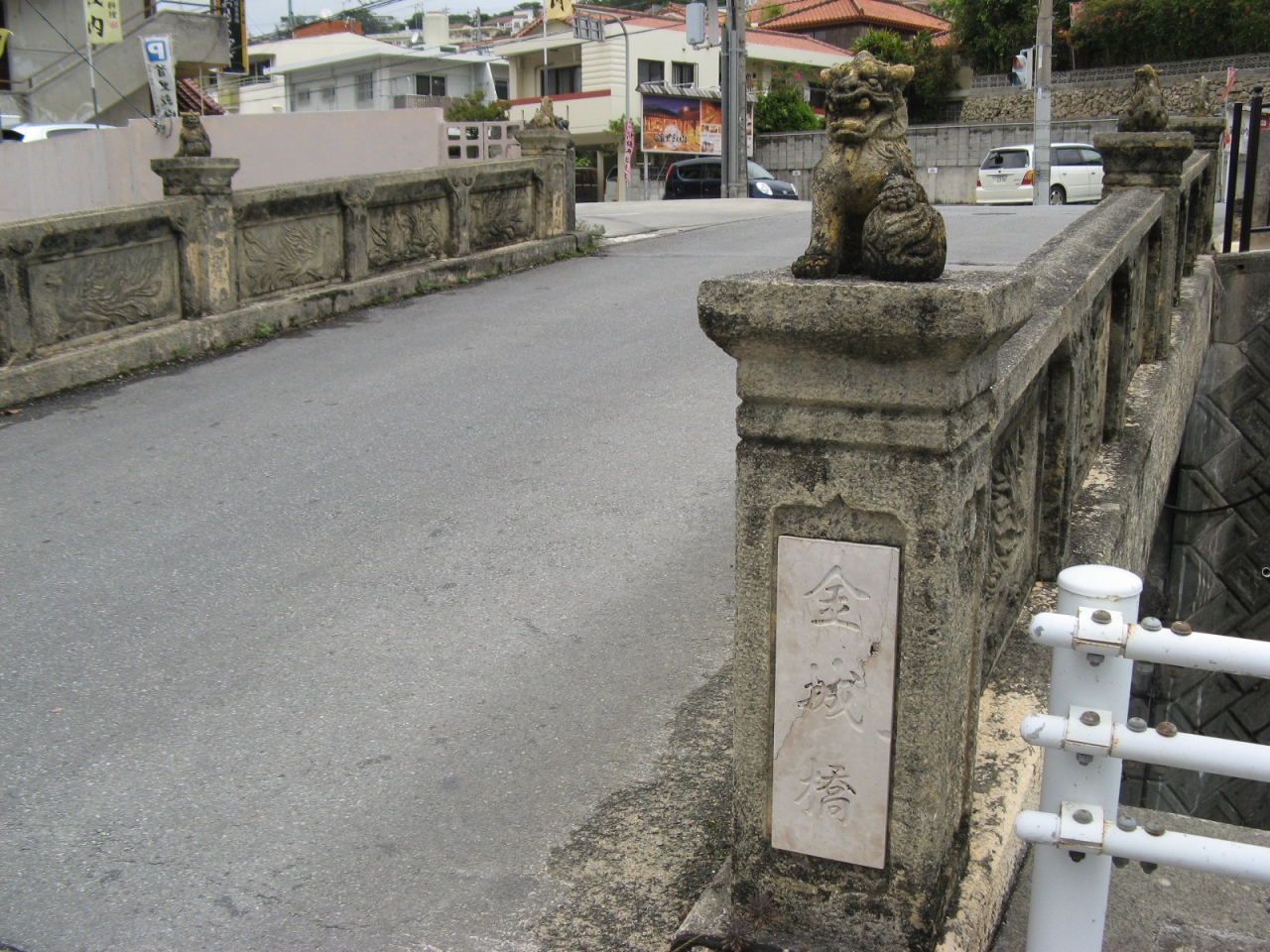 『金城橋(カナグスクバシ)は、琉球王国時代、首里・識名台地の間を流れる金城川に架けられた橋。橋の創建年は不明であるが、1677年に木橋から石橋に建て替えられた(「金城橋碑文(カナグスクバシひぶん)」建立)。1809年の洪水により損壊したが、翌年、橋は元の位置から少し下流で再建され、橋の南側に「重修金城橋碑文(じゅうしゅうカナグスクバシひぶん)」の碑が建立された。1945年(昭和20)の沖縄戦により、橋も碑も破壊された。現在残っている碑の残欠は、1985年(昭和60)、金城橋改修の際に、橋の北側に移設されたものである。