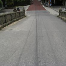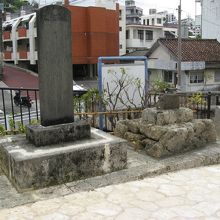 王府時代は南に抜ける主要な街道(真珠道)であった識名坂を金城橋から見ると、道は、狭くてかなりの急坂です。周辺は住宅地となっていて昔の街道の趣はありませんが、石碑の説明板を見て、琉球王国時代に思いをはせることができました。