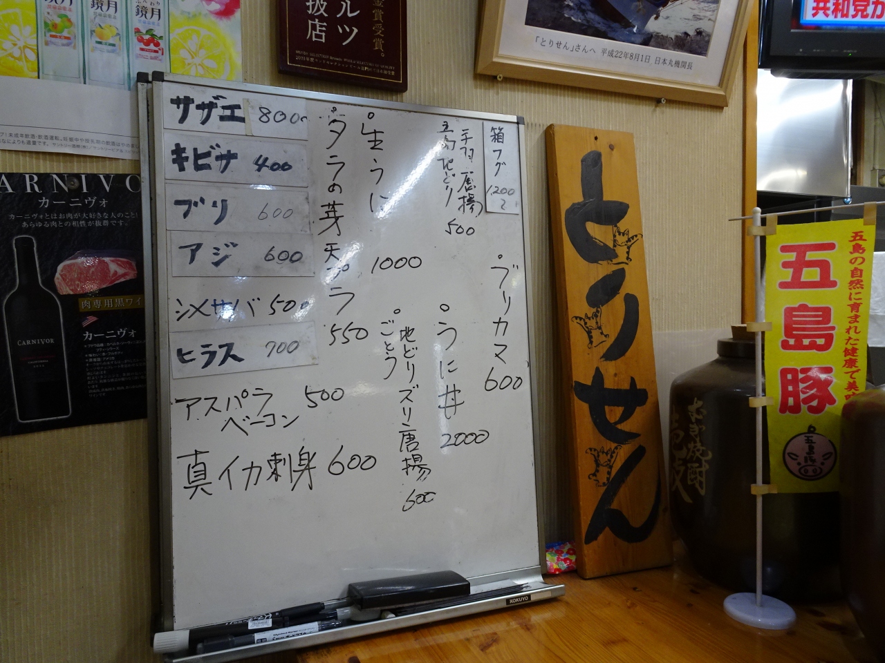 ホワイトボードに本日のおすすめが書いてあって,五島名物「ハコフグの味噌焼き」もあったのに気が付かず,わたしは結局食べてません