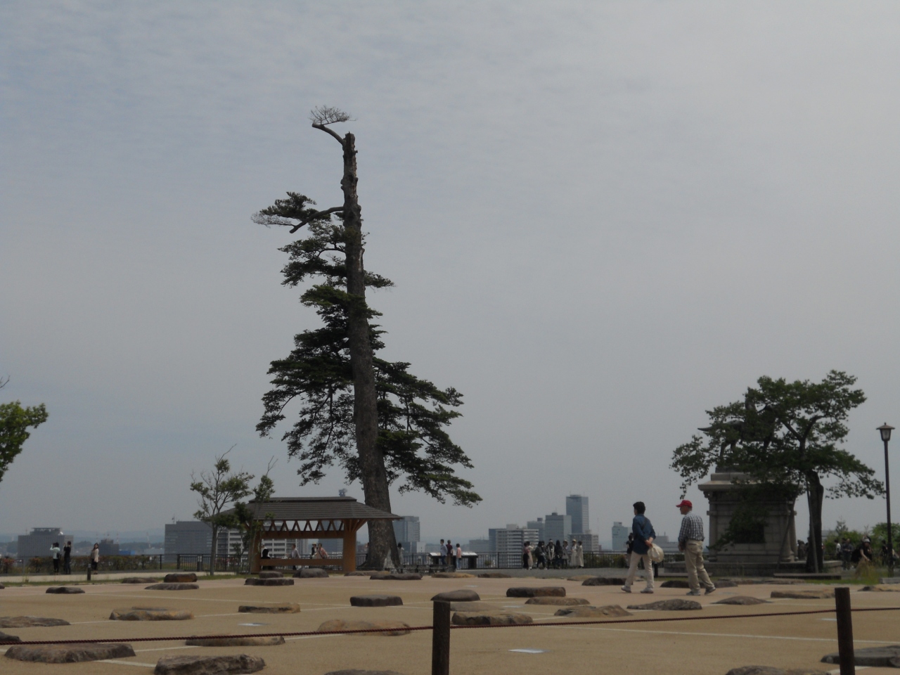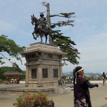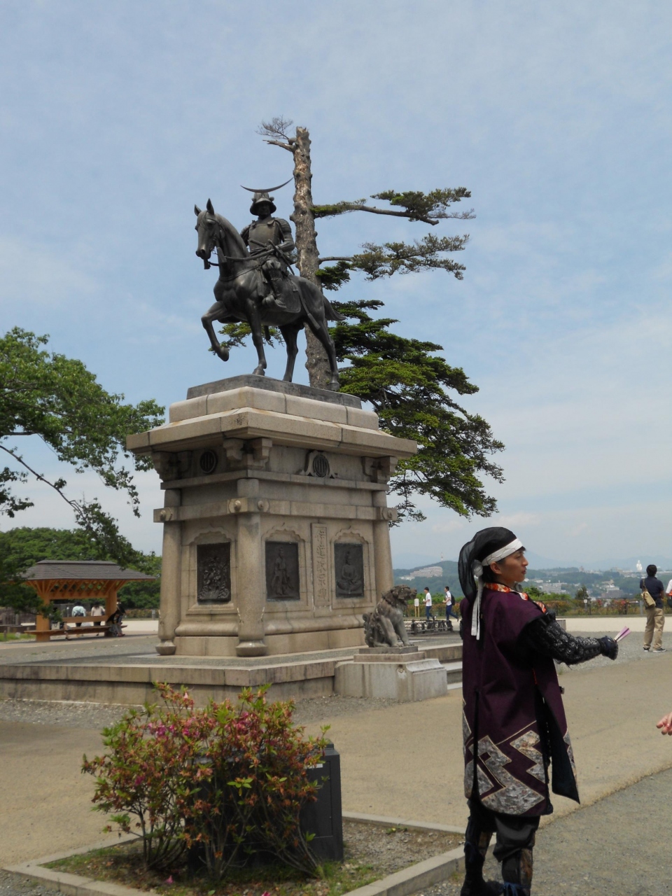 天守台の広場が綺麗に整備されていて、戦国武将の衣装をまとった方々が、写真撮影のサービスもされていました(伊達政宗公の像の前)。