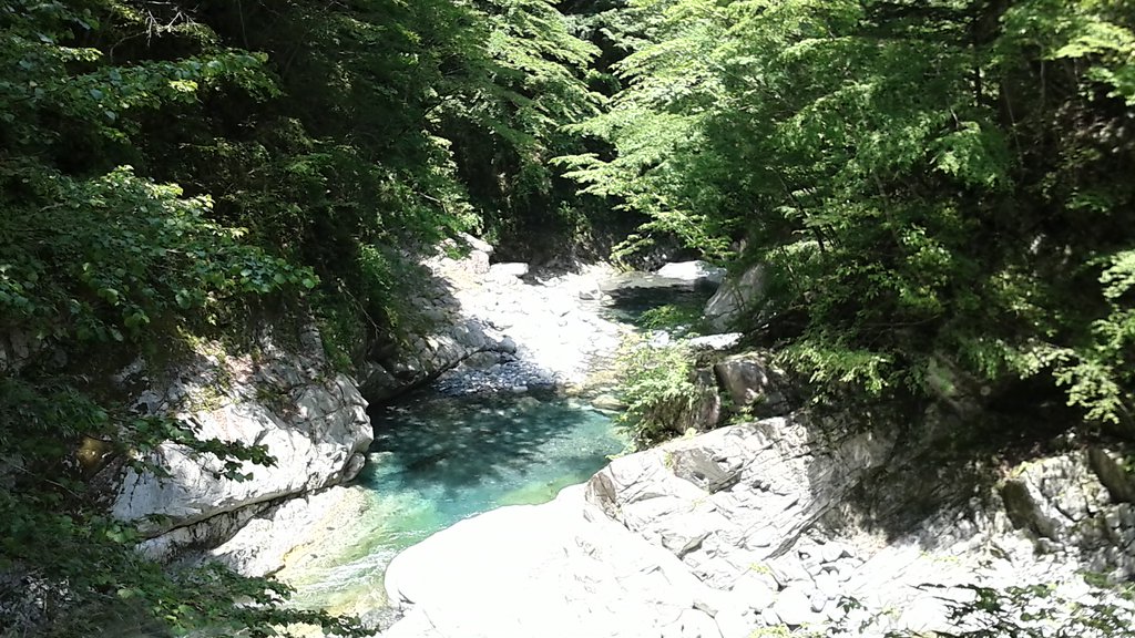 登山道の起点から3キロ歩くと林道入口。さらに3キロ歩くと玄倉ダムという最も色が綺麗な場所に出ます。時間としては約1時間半程度でしょう。