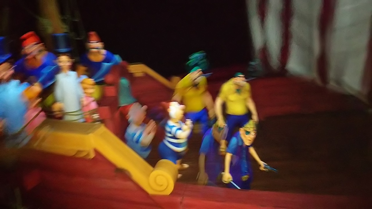 船に乗ってロンドンの街からネバーランドへ向かうというアトラクションです。あまり印象の残らない乗り物でした。ジェットコースターのようにスピードが出る訳でもないので小さなお子様向けです。正義の味方になってナイフ片手にフック船長と戦ってみよう。