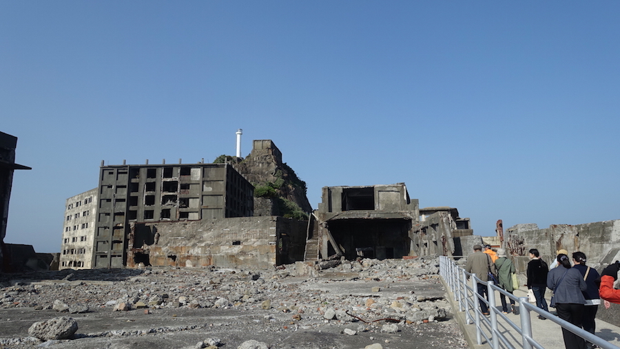 海底炭鉱の島で高層鉄筋アパートが立ち並んでいた島ですが1974年の炭坑閉山後に無人島になりました。2015年に、明治日本の産業革命遺産の構成資産のひとつとして世界遺産に登録され、現在はツアーに申し込んだ場合のみ上陸することができます。