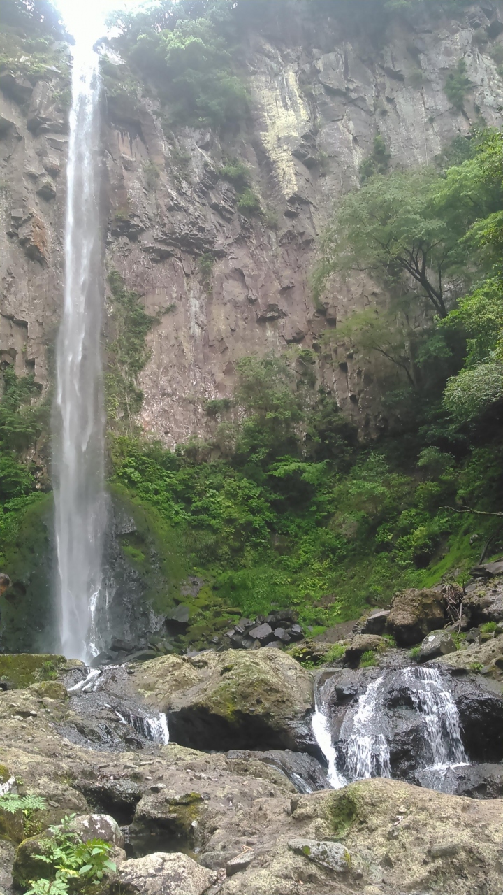 バスツアーで訪問しました。バスから降りて雨上がりの山道を少し歩きます。雨上がりでしたので、少し道が悪く、滑るかもしれないと思い、ゆっくり歩きました。滝つぼのそばまで行くとマイナスイオンたっぷりの水しぶきがかかりました。夏には気持ちが良いと思います。